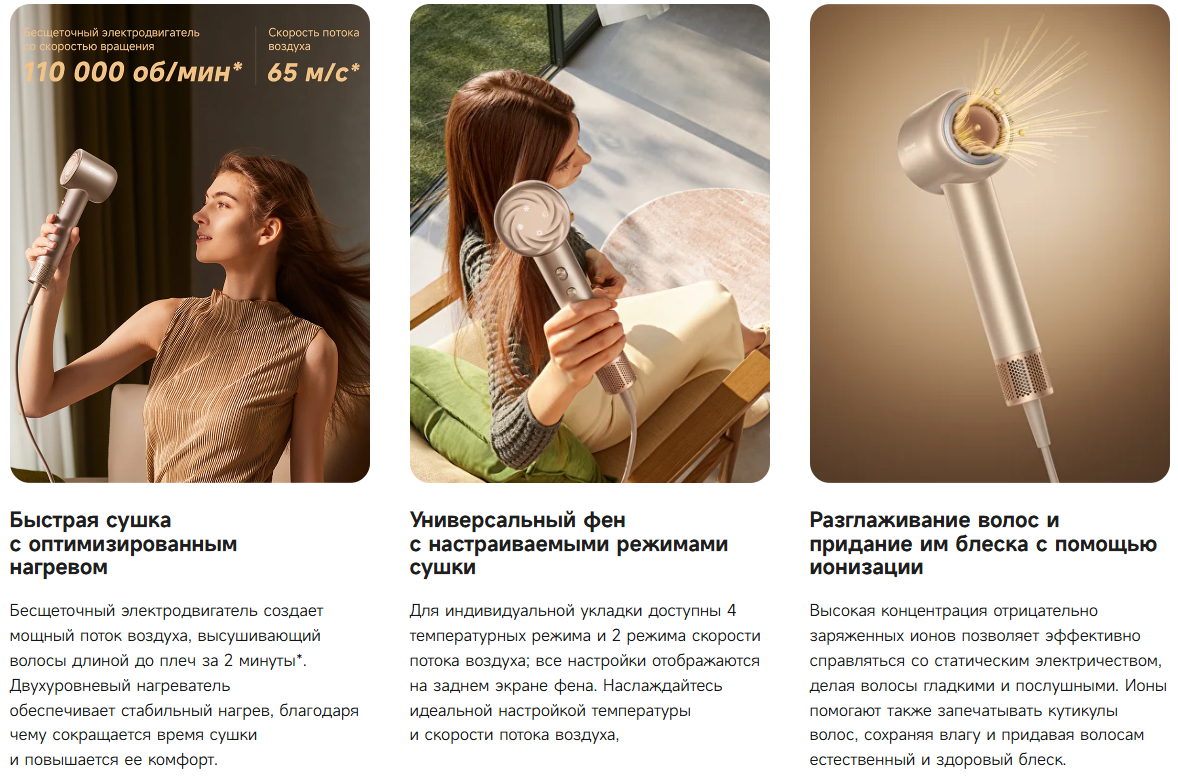 Обзор Фен Dreame Hair Glory Mix золотистый
